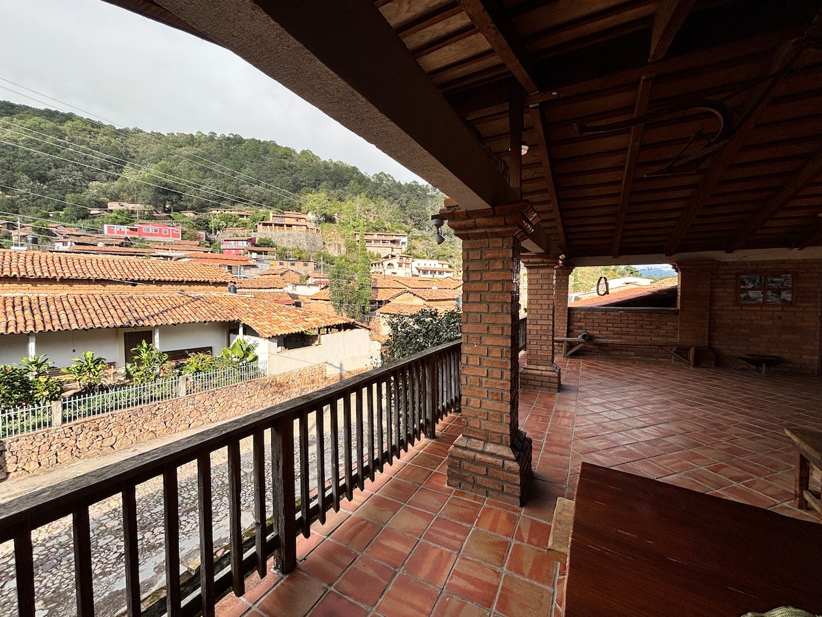 Este lugar único tiene su propio estilo. Estas a solo 1 cuadra de la plaza, tiene 3 recámaras hermosas cada una con su balcón propio, baño completo propio y la mejor vista del pueblito mágico, cocina integral de lujo, sala, comedor, tv, wifi, estacionamiento y todo lo que necesitas para quedar bien con los que amas.