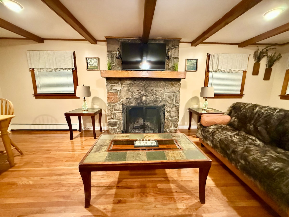 ¿Buscas una escapada a la montaña? Escápate a nuestra casa de campo Poconos, que combina a la perfección la comodidad moderna y el encanto rústico en un entorno privado y boscoso. ¡Explora rutas de senderismo cercanas, disfruta de restaurantes locales, esquía, pesca, barco o simplemente disfruta de la tranquilidad de la naturaleza mientras te sientas junto al fuego! También disfrutarás de wifi rápido, aire acondicionado y una chimenea de gel en el interior.