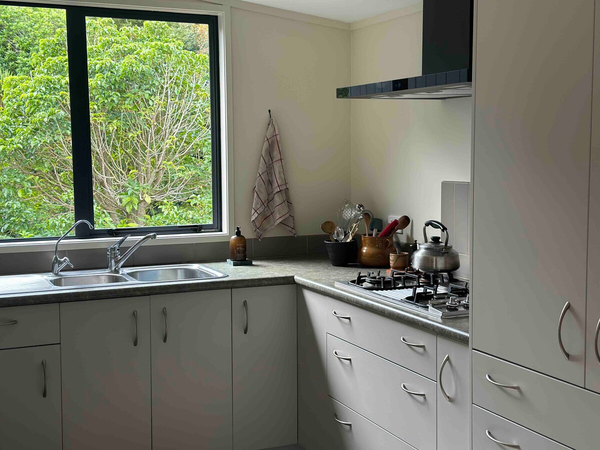 Entorno de arbustos único, privado y amplio; un verdadero refugio. Hermosas vistas a un valle de arbusto regenerador y al mar, con la isla de la Gran Barrera a lo lejos. Lejos de todo, pero a mano de todo. Nota: Pregunta por nuestro alojamiento adicional, The Empty Nest - www.airbnb.co.nz/rooms/1503971971744608483. Ideal para dos parejas que viajan juntas pero que desean más privacidad. Una pareja puede reservar The Treehouse y otra, The Empty Nest. Las instalaciones de cocina de la casa del árbol se pueden compartir.