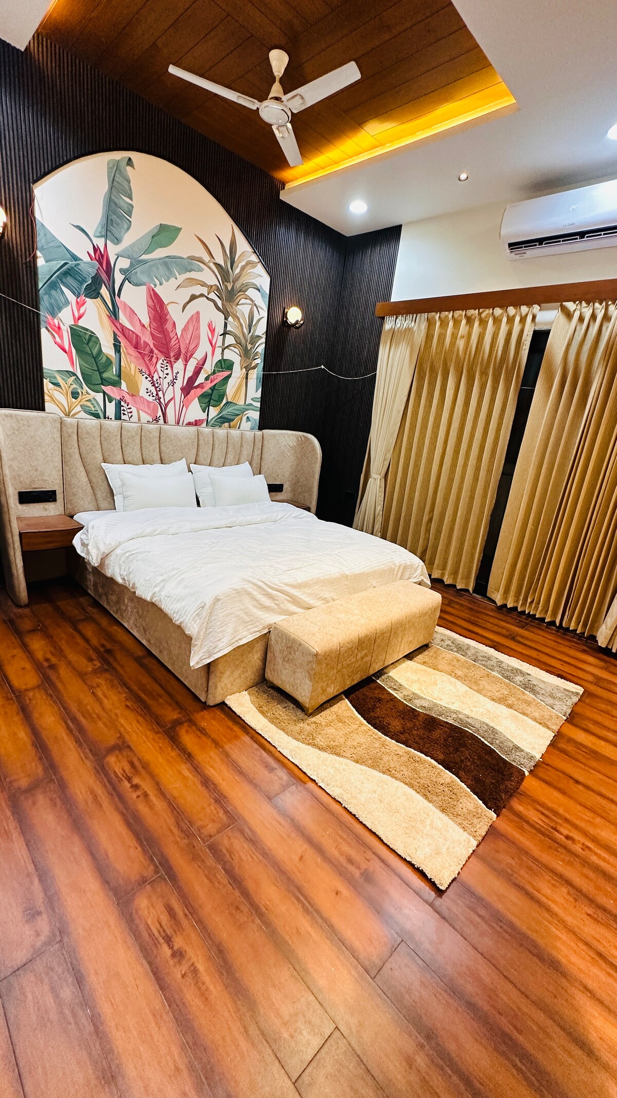 Bring the whole friends & family to this great place with lots of room for fun. - All large rooms equipped with 55” inch TV. - Spacious, clean, and beautifully furnished interiors - One Room with private Swimming Pool of 225 sqft - Fast Wi-Fi & Smart TV - Fully equipped kitchen with essentials - 24/7 hot water & air conditioning - Private balcony - Easy and secure parking - Bathroom essentials- Biotique Perfect for Couples & families looking for a stylish, peaceful, and well-connected stay.