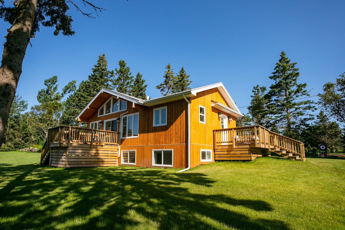 Esta casa de campo de concepto abierto cuenta con un ambiente fresco y contemporáneo, sin dejar de ser cómoda y acogedora. Disfruta de una cocina totalmente equipada, una amplia terraza y una ducha al aire libre. Ideal para familias o amigos que buscan disfrutar de un diseño privado de 3 dormitorios y 2 baños con un gran espacio al aire libre y hermosas vistas. ¡La reserva incluye pase gratuito a la playa del Parque Nacional (a menos de 2 km de distancia)! ¡Un lugar ideal para explorar PEI!