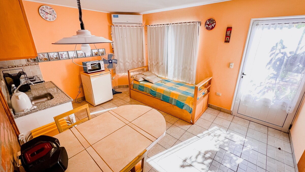 Disfrutá de una estadía cómoda y práctica en este departamento totalmente equipado. Tiene 1 habitación con cama matrimonial, sofá cama tipo marinera con cajonera abajo con colchón. cocina completa, TV, aire acondicionado, ropa de cama y toallas. Ideal para hasta 4 personas. Perfecto para estancias cortas, de paso hacia otro destino o para quienes necesiten estar cerca del Hospital Samic por turnos o acompañar a un familiar.