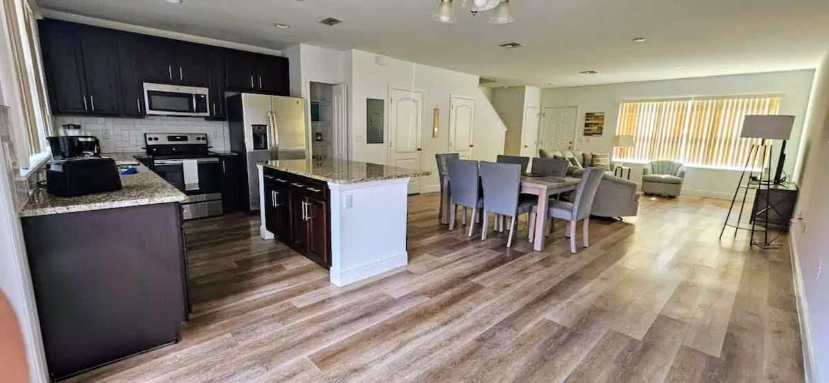 ¡Bienvenido a nuestra casa de vacaciones personal! ¡Amplia casa adosada ubicada en Regal Oaks Resort! ¡Café, Nespresso, té, wifi gratuito! ¡Está cerca de los parques temáticos y de todo lo que Orlando tiene para ofrecer! Ven a relajarte en tu propio spa privado después de un largo día en los parques, o disfruta de los toboganes acuáticos del resort, la piscina climatizada, los juegos junto a la piscina y el bar tiki con comida y bebida, los juegos de arcade en el Clubhouse y mucho más. Si te apetece más diversión, ¡camina hasta el casco antiguo de al lado! ¡Nuestro alojamiento es APTOS PARA BEBÉS Y NIÑOS!