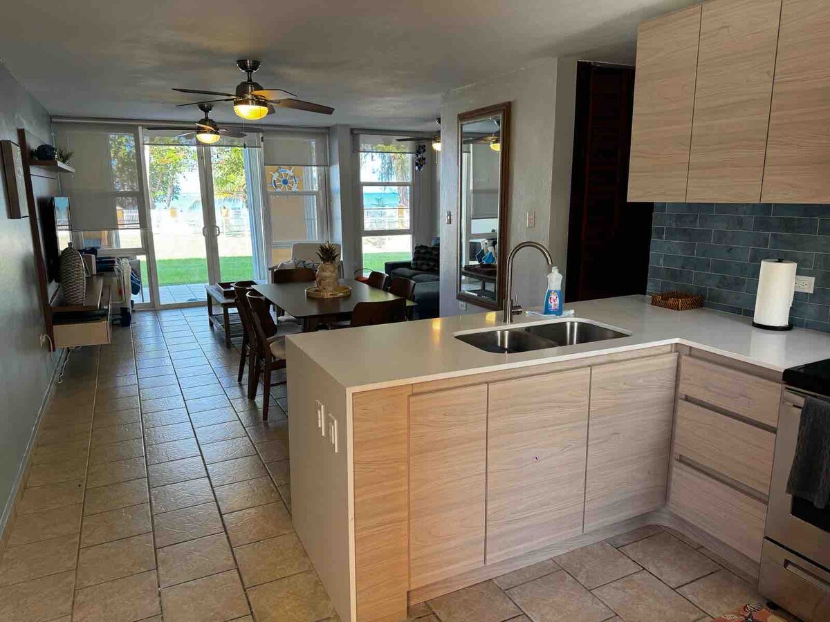 Bienvenido a nuestro apartamento en primera línea de playa. Relájate y desconecta con el relajante sonido de las olas y la fresca brisa del océano. Este precioso apartamento frente a la playa ofrece acceso directo a la playa y es el escenario perfecto para unas vacaciones familiares o una escapada tranquila. Los huéspedes pueden disfrutar de servicios compartidos, como piscina, cenador y parque infantil. Siéntate, relájate y disfruta del viaje. Como dijo uno de nuestros huéspedes: "Justo fuera de lo común, pero lo suficientemente cerca de todo como para ser conveniente".