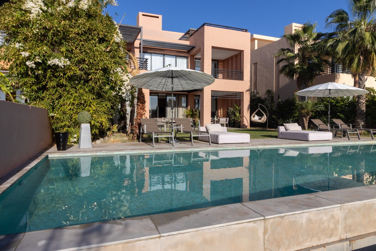 Descubre esta lujosa villa frente al golf, marca Park Hyatt, que encarna la elegancia y la comodidad en el corazón de Marrakech. Con acceso directo al prestigioso Golf Al Maaden y al Park Hyatt, esta villa ofrece una experiencia única tanto para los amantes del golf como para los amantes de la relajación. Desde el jacuzzi de la terraza de la azotea o la piscina infinita climatizada, disfruta de impresionantes vistas al campo de golf y a las montañas del Atlas, especialmente impresionantes al atardecer.
