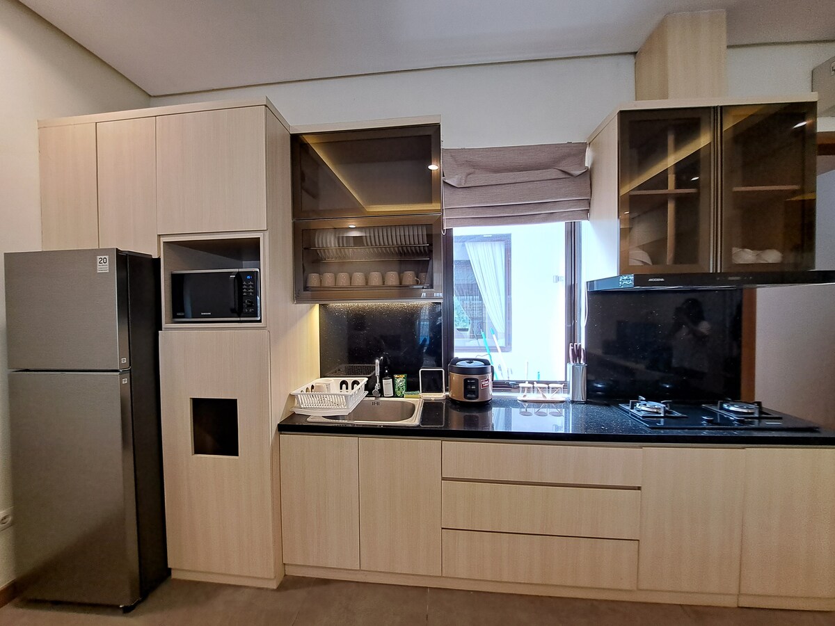 Esta villa cuenta con una cocina sencilla, estufa, gas, sartén eléctrica, refrigerador y comedor. Amplia recámara con baño privado, TV y reproductor de DVD en el área de la sala de estar. Está a poca distancia a pie de una Casa Club que tiene un gran gimnasio, piscina, jacuzzi, tienda de conveniencia. También hay Pullman Hotel y restaurante de comida indonesia (Bumi Sampireun) junto a la Casa Club. Disfruta del aire fresco y del hermoso paisaje (jardín de flores y parque de ciervos) que supervisa los guardias de seguridad las 24 horas.