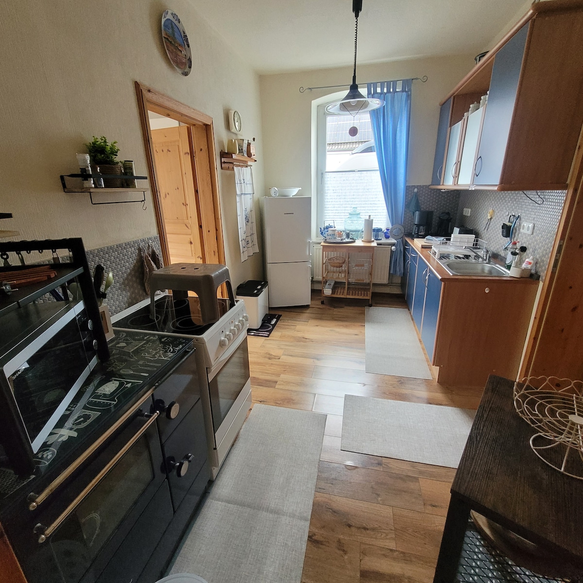Ofrecemos en la ciudad de Heide, a 20 km del mar del Norte, una parte de nuestra casa como una unidad residencial completa y totalmente separada de unos 120 m2 para un máximo de 4 personas. El apartamento de vacaciones se encuentra en una tranquila calle residencial, a unos 15 min. a pie del centro de Heide/plaza del mercado y es muy conveniente como punto de partida para pasear por el páramo, el bosque y para hacer excursiones en bicicleta. Se pueden guardar las bicicletas y aparcar el coche justo delante de la puerta.