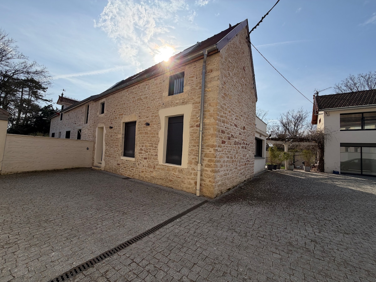 Casa vinícola, reformada en 2021, en el centro del pueblo vinícola de Givry, situada en la ruta del vino de la Côte Chalonnaise. Casa rural de 80 m2 con patio interior compartido donde se pone a su disposición muebles de jardín, acceso a la barbacoa, mesa de ping-pong, así como a la piscina climatizada (de mayo a octubre dependiendo del clima) Capacidad para 4 personas. Cocina equipada, sala de estar con TV y 2 dormitorios, 1 de ellos con baño. Todos los servicios y actividades (bicicleta, degustación, ...) cerca