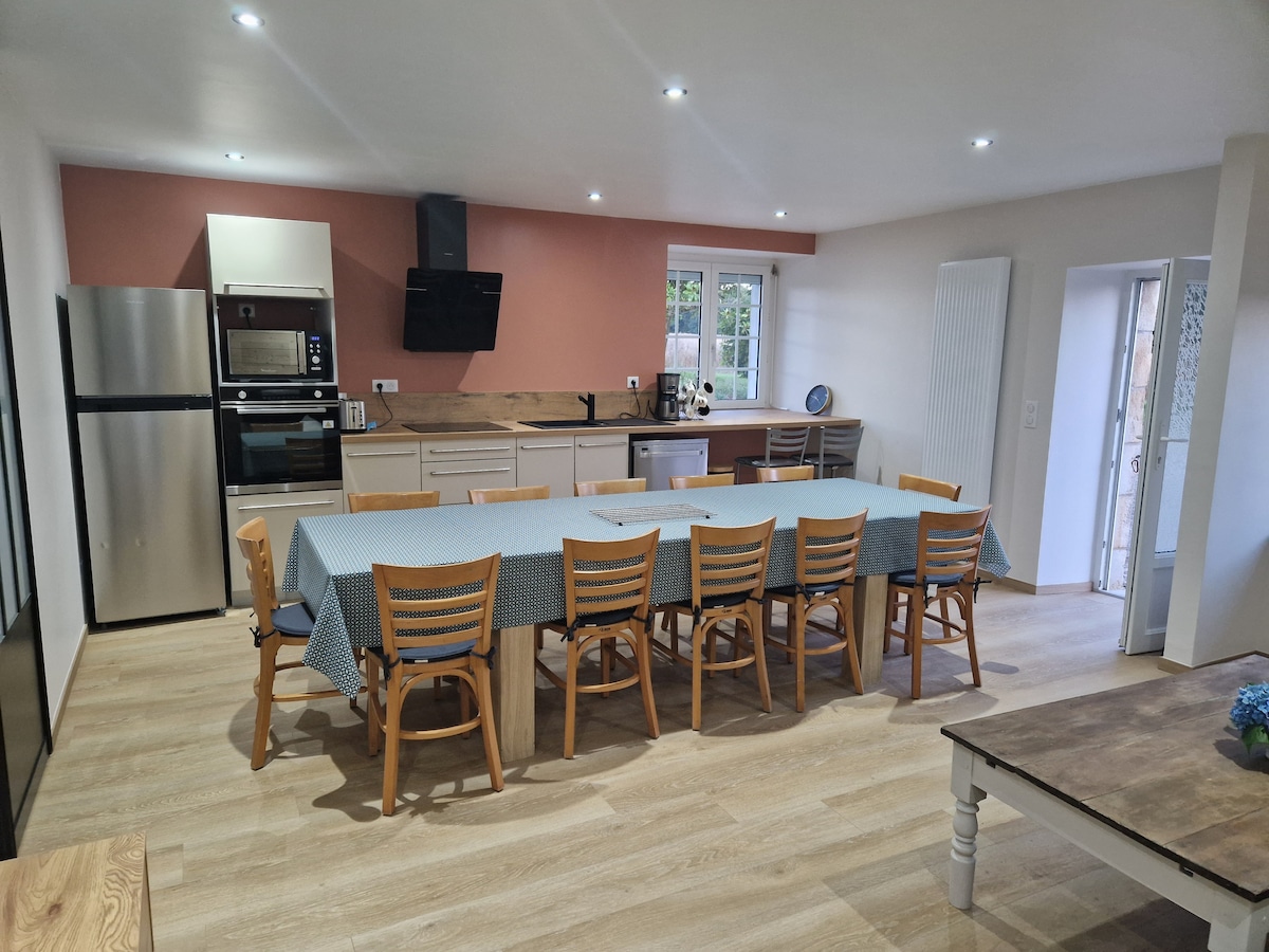 Nuestra casa está totalmente renovada para darle la bienvenida con un acceso al espacio de bienestar incluido con un jacuzzi para 4 personas. El espacio de bienestar es accesible y privado, excepto la mañana de su salida, para proceder al vaciado y limpieza del spa. Rutas de senderismo, ciclismo de montaña, valle verde. Wake West Park a 10 minutos, pueblo de Poul Fetan a 10 minutos. Lorient y playas a 35 minutos. Se proporcionan sábanas, toallas y albornoces de baño.