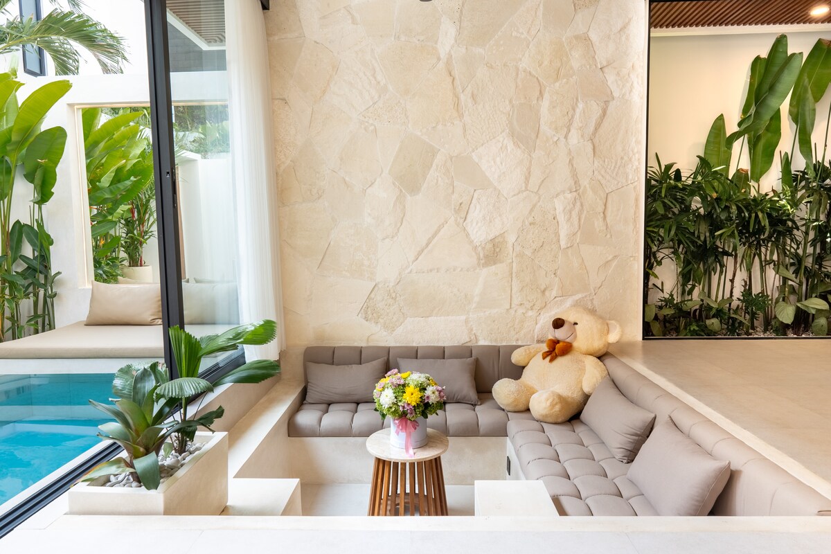 Disfruta de una experiencia elegante en este lugar céntrico. *Moderna villa NUEVA de 2 dormitorios con diseño loft, piscina privada y zona chill *Corazón de Canggu, a 1,5 km de ECHO BEACH (LA BRISA), a 1,6 km de BATU BOLONG BEACH *Wifi de fibra óptica superrápido de 150 Mb/s, perfecto para trabajar y ver vídeos en streaming *SmartTV(Netflix,Youtube) * Amplio salón y moderna cocina totalmente equipada con todo lo que necesitas. *2 cómodos dormitorios con baño privado y aire acondicionado *Estacionamiento *Cerca de Crate Cafe y Copenhague