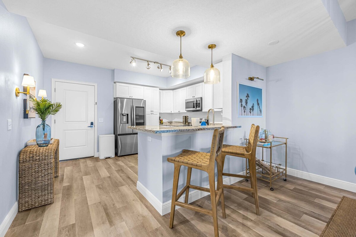 Este apartamento en la planta superior está a solo 102 metros de la línea de playa en el corazón de Indialantic. Recién remodelado con CB2, RH. Rodeado de restaurantes y tiendas, ofrece un amplio espacio y servicios para todos los gustos: ya sea una escapada romántica, unas vacaciones familiares llenas de diversión, una reunión con viejos amigos o simplemente un tiempo muy necesario. Totalmente equipado con equipo de playa, artículos básicos de cocina, artículos de aseo y televisores en cada habitación. Además, los huéspedes pueden disfrutar de la piscina de agua salada, bellamente iluminada y abierta las 24 horas, los 7 días de la semana