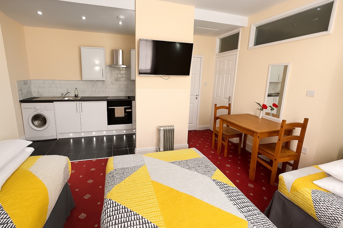 Ubicado en un barrio tranquilo, este encantador estudio ofrece confort, privacidad y comodidad. Ideal para estancias cortas y largas. En el interior, encontrarás tu propia kitchenette privada, totalmente equipada para preparar comidas sencillas, junto con una mesa de comedor, perfecta para disfrutar del desayuno o relajarte por la noche. El estudio también incluye un moderno cuarto de baño con ducha en la habitación. La cama se puede convertir en cama doble para disfrutar de un sueño más reparador. Aparcamiento gratuito en las instalaciones y cerca del centro.