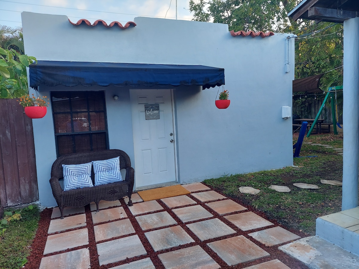 103 años con una nueva apariencia! Venga, acabamos de renovar nuestros jardines! Relajese en esta cabaña de un dormitorio recien renovada, separada de la casa principal, con su propia sala de estar y cocina. Rodese de tranquila vegetacion y jardines mientras esta a pasos del corazon de las galerias de arte y restaurantes de la Calle Ocho. Panaderia local, tienda de comestibles y una lavanderia a la vuelta de la esquina para su comodidad. Ofrecemos cafe, te, 2 botellas de aqua filtrada.
