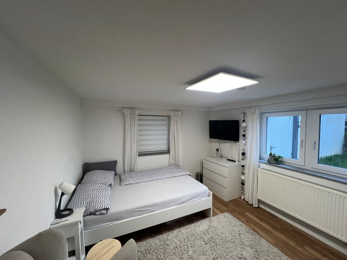 Elegante apartamento de 2 habitaciones situado en el distrito de Schwäbisch Hall (a unos 2 km del centro). Panadería, Lidl y autobús a 3 minutos a pie. Baño y dormitorio separados. Luminosa sala de estar/comedor con cocina nueva (completamente equipada con electrodomésticos). Además, hay un sofá cama en la sala de estar. La terraza invita a relajarse y permite una vista del hermoso jardín. Todas las habitaciones tienen calefacción por suelo radiante y disponen de plaza de aparcamiento en la propiedad.