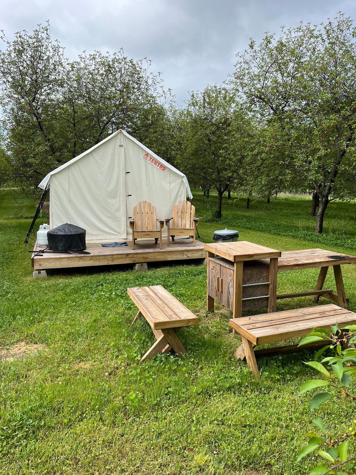 Relájate y disfruta de todo lo que la naturaleza tiene para ofrecer en las colinas de Lost Woods Farm + Forest, un centro vacacional ecológico de 160 acres a pocos minutos de Boyne Mountain. Explora senderos, arroyos, vida silvestre y recoge bayas silvestres durante tu estancia. Nuestra tienda de campaña se encuentra en la cima de la colina con la vista más espectacular de Boyne Valley. En el interior encontrarás un colchón tamaño queen de espuma viscoelástica, sábanas blancas de lujo, mantas adicionales, ventiladores portátiles, linternas y suministros para fogatas, mesa y sillas, nevera y un pozo de fuego privado.