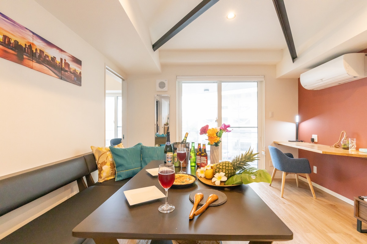 ¡En la zona turística de Okinawa! ¡Disfrutemos de un rato de relax! *Condominio de estilo hawaiano* ¡A 7 minutos de la IC y a 3 minutos a pie de la playa!