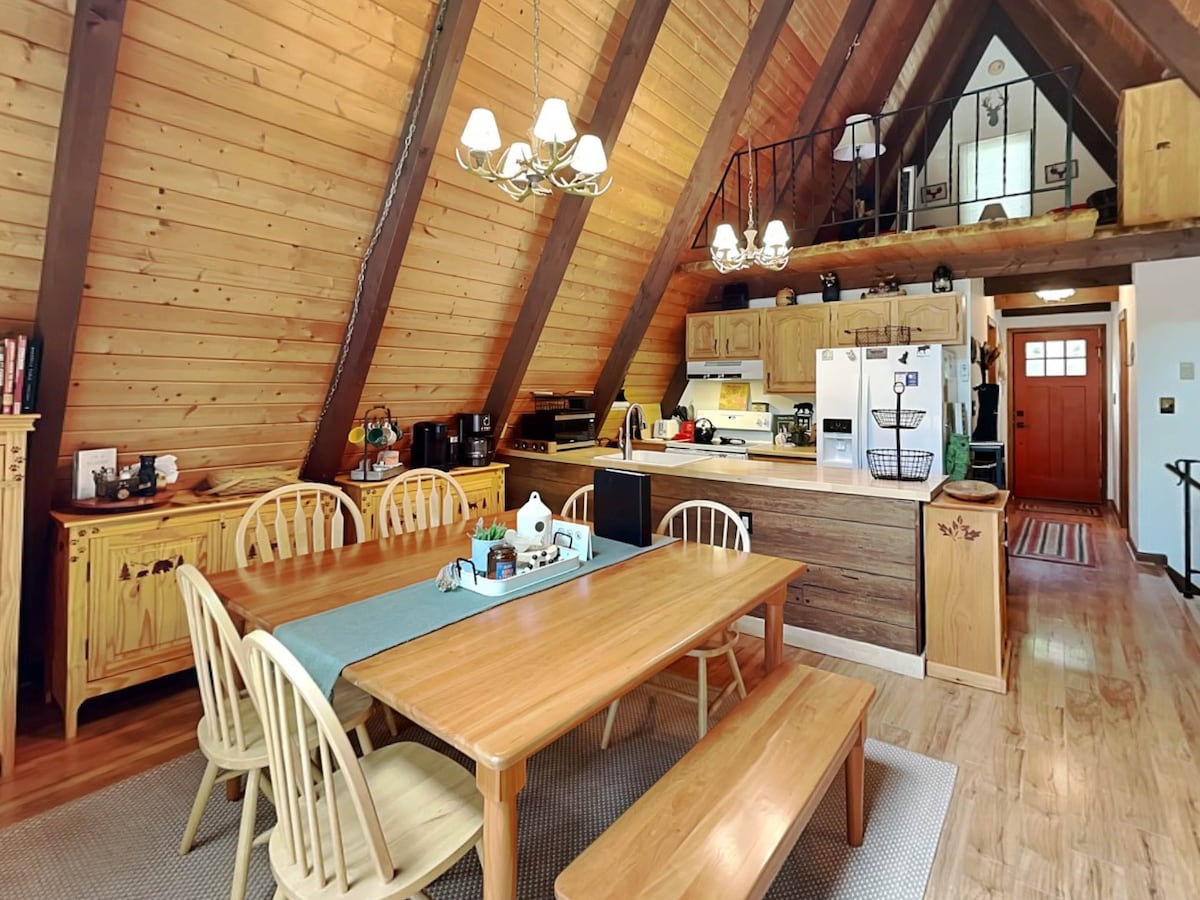 Cabaña tranquila y serena con chimenea en DCL. 2 dormitorios acogedores con camas tamaño queen, sofá cama queen con colchón de aire. Planta abierta, cocina bien equipada, amplio espacio cómodo para que todos disfruten de la televisión, los juegos o la conversación, espacio de trabajo dedicado. Gran espacio al aire libre para barbacoas, disfrutar de comidas, juegos y un buen fuego. Tanto si buscas una escapada romántica como unas vacaciones familiares, Heavenly Mountain Hideaway es el lugar perfecto para divertirte, relajarte y crear recuerdos en Deep Creek Lake.