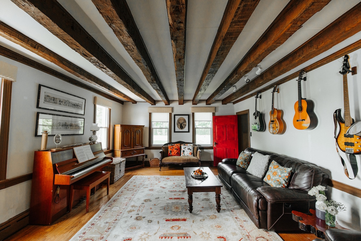 Escápate a un apartamento privado increíblemente renovado en un tercer piso de 6000 pies cuadrados. Mansión victoriana de 1883 en Blooming Grove, Nueva York. Diseñado para 1–6 huéspedes, este espacio lleno de luz ofrece comodidad y encanto clásico en un entorno rural tranquilo. Incluye camas de lujo, una bañera con patas, ducha con puerta francesa y cocina americana con un soleado rincón para desayunar. Un santuario ideal. Vistas de flores silvestres, campo tranquilo y vacas al lado. Tercer piso subiendo dos escaleras, recompensado con un espacio impresionante y vistas elevadas.