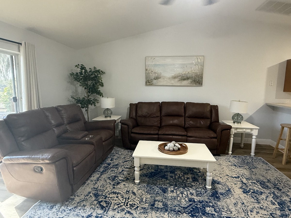 This spacious 1 bedroom / 1 bathroom apartment is located West of Orlando in the beautiful town of Minneola right next to Clermont in the heart of Central Florida and is perfect for a short or long term stay. Features a large bedroom & bathroom, comfortable couch w/ dual recliners, plenty of closet space & storage, and a Smart TV. Kitchen is stocked with all the essentials and has a dishwasher, gas stove, refrigerator w/ ice maker, coffee maker, microwave and crockpot.