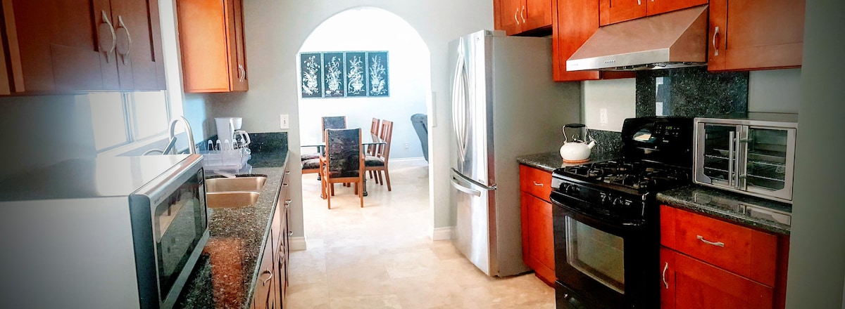 Nuestra hermosa casa se encuentra en el corazón de San Diego. Desde la puerta principal de la sala de estar verás la cocina, la sala de estar y directamente el amplio patio trasero con un putting green. Perfecto para reuniones familiares. La cocina está totalmente equipada. - Fogones Thermador, campana extractora, microondas, horno y amplia isla. Patio trasero perfecto para una reunión: Seguro y limpio para que los niños corran. Tiene putting green, fogata y múltiples zonas de estar.