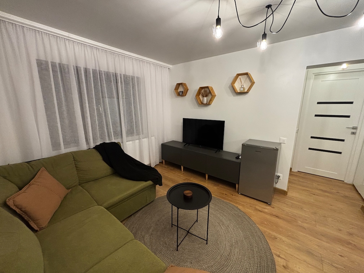 Gran estudio situado en el corazón de la ciudad con excelentes vistas al parque y al monasterio de Dealu. Bien comunicado con el transporte público y las tiendas. Lugar tranquilo ideal para pasar tu estancia en la capital del famoso gobernante Vlad Drácul. Aparcamiento gratuito delante de la ubicación.
