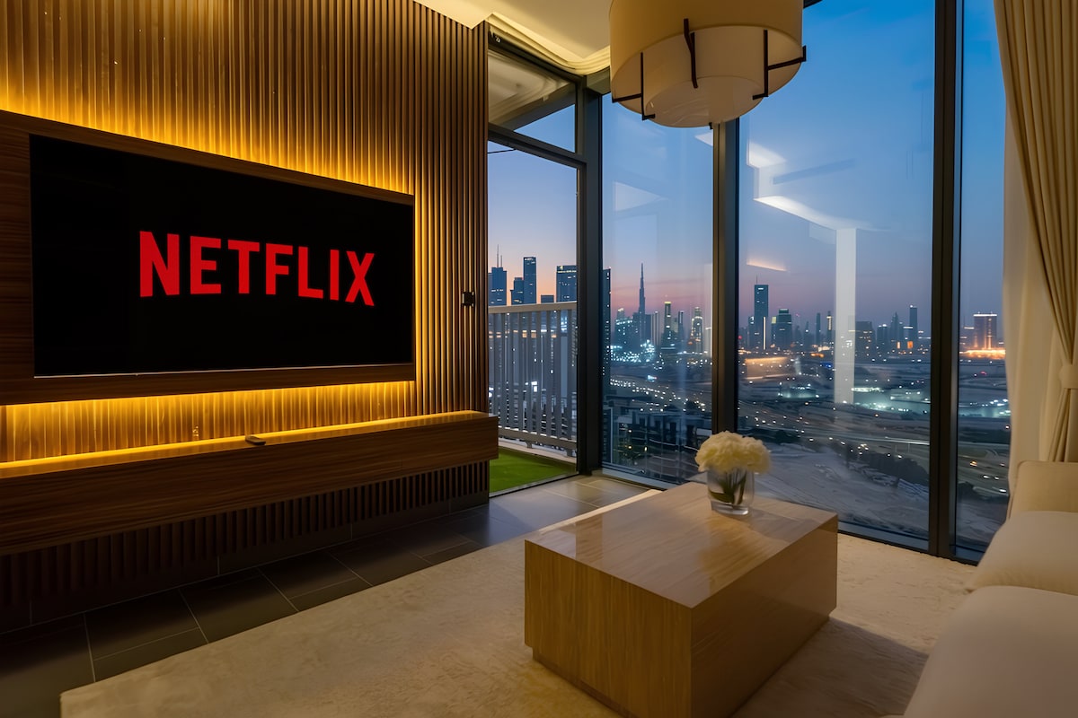 Disfruta de los icónicos espectáculos de luces LED de Burj Khalifa desde tu balcón privado. 🛏️ Para dormir cómodamente Una cama tamaño king con un colchón de alta calidad más un sofá cama extragrande con un colchón de suelo prémium de 2 × 2 metros. 🌇 Vistas al Burj Khalifa LED El balcón que da a la zona de luces led te permite disfrutar de los espectáculos nocturnos en primera fila. 🎬 Entretenimiento en todas partes Proyectores listos para Netflix y una televisión inteligente para un cine en todas las habitaciones. ✨ Cortinas opacas y ropa de cama de calidad hotelera para un sueño profundo e ininterrumpido.
