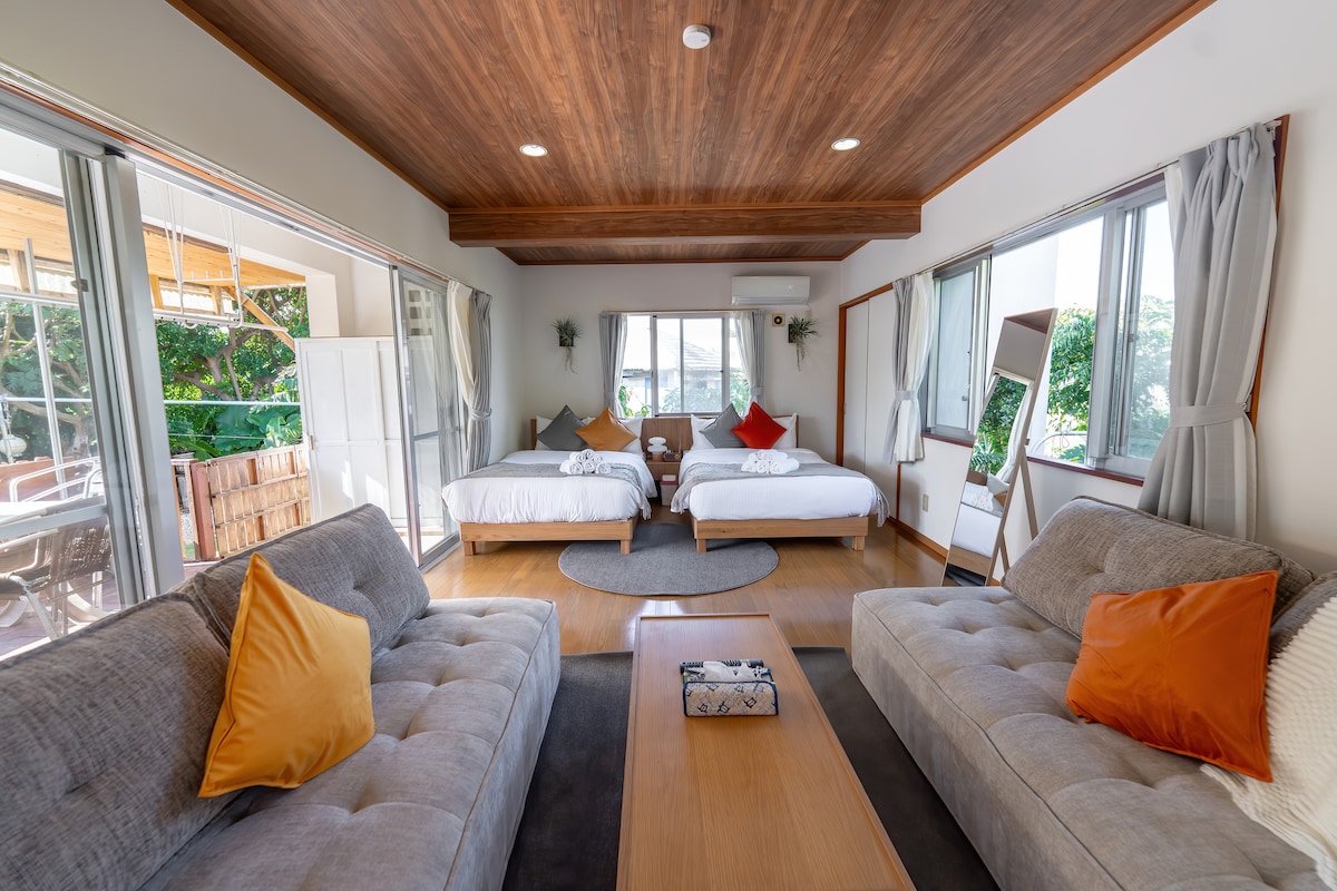 Una antigua villa con piscina privada limitada a un grupo por día para lograr una estancia tranquila en un centro vacacional mientras sientes la vida isleña en un pueblo. Es una ubicación conveniente a 9 minutos en coche del aeropuerto, cerca del centro de Miyakojima, y una casa antigua tradicional ubicada en un pueblo tranquilo lejos del bullicio de la ciudad. Modernamente renovado en todas las instalaciones, conservando el encanto de la arquitectura tradicional, como los techos y vigas de tejas rojas de Ryukyu.También hay un ablandador de agua y muchas comodidades, para que puedas alojarte con tranquilidad y comodidad mientras te hospedas en una antigua casa privada. También hay una piscina privada de 5 metros de largo, y puedes relajarte junto a la piscina con vistas al cielo azul y los árboles Gajumaru. Está a solo 3 minutos a pie de la playa, y también hay un gran parque cerca, por lo que caminar y correr también es bueno. Sumérgete en la vida isleña mientras disfrutas de un retiro de lujo con una sensación de privacidad. * También puedes alojarte con hasta un pequeño perro de interior. Después de una mascota, se limpia especialmente, incluido el uso de un desodorante con un desodorante de ozono, por lo que incluso los huéspedes que no traen mascotas dicen que no les importa el olor o la suciedad en absoluto.