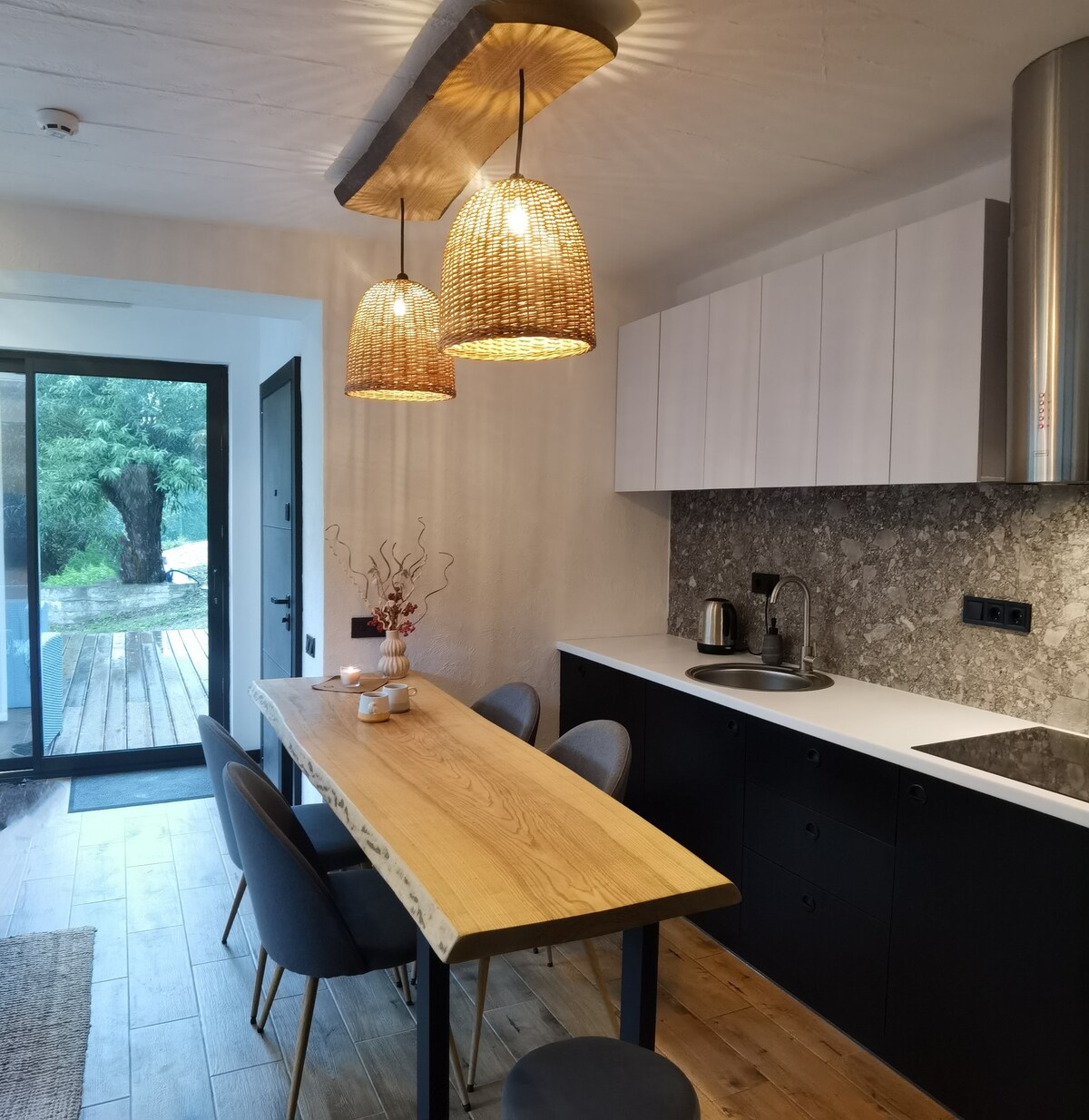 Apartamento de diseño moderno y cocina propia en un nuevo y acogedor mini-hotel en la pintoresca parte de Transcarpathia en el pueblo de Izki. El territorio del complejo tiene acceso al wifi satelital Starlink. Como energía de respaldo, se instalan un sistema de batería y un generador. La calefacción es el suelo. Cerca (10 minutos a pie o en coche) hay coliba, restaurante, tienda, telesilla, sauna, tanque y otras actividades turísticas. También hay 4 pistas de esquí más de hasta 30 minutos.