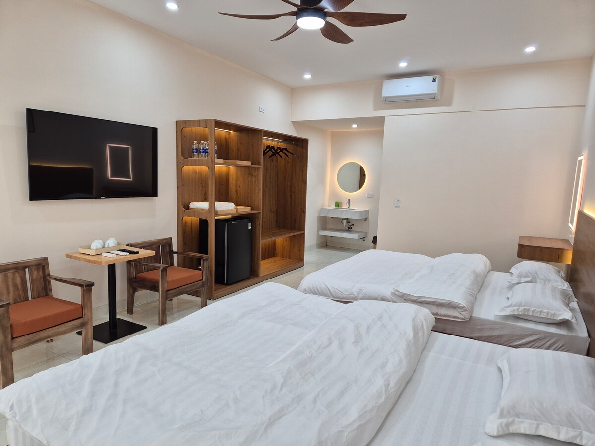 Esta es la mejor oportunidad para disfrutar de una estancia inolvidable y cómoda mientras visitas Moc Chau. Este lugar está situado en el centro de Moc Chau, cruzando la calle de Chư Đêm. Elegante y con una decoración moderna, cuenta con la siguiente distribución y servicios: - 2 Dormitorios principales con camas Queen/King Size - 3 baños completos: sala de estar luminosa con comedor hasta 6 personas. - Cocina totalmente equipada con todo lo esencial y utensilios - Internet de alta velocidad y TV inteligente. - Plaza de aparcamiento gratuito.