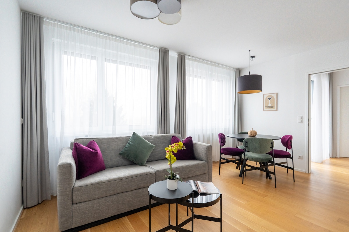 Bienvenido a nuestra suite Urban 1BR, situada justo enfrente de la estación de metro U1 Altes Landgut. Stephansplatz y el centro de Viena están a solo 10 minutos en metro. LO más destacable: • Propiedad gestionada por profesionales • Aparcamiento de pago disponible en las instalaciones • Servicios en el alojamiento: taquillas para equipaje, lavandería y vestíbulo.