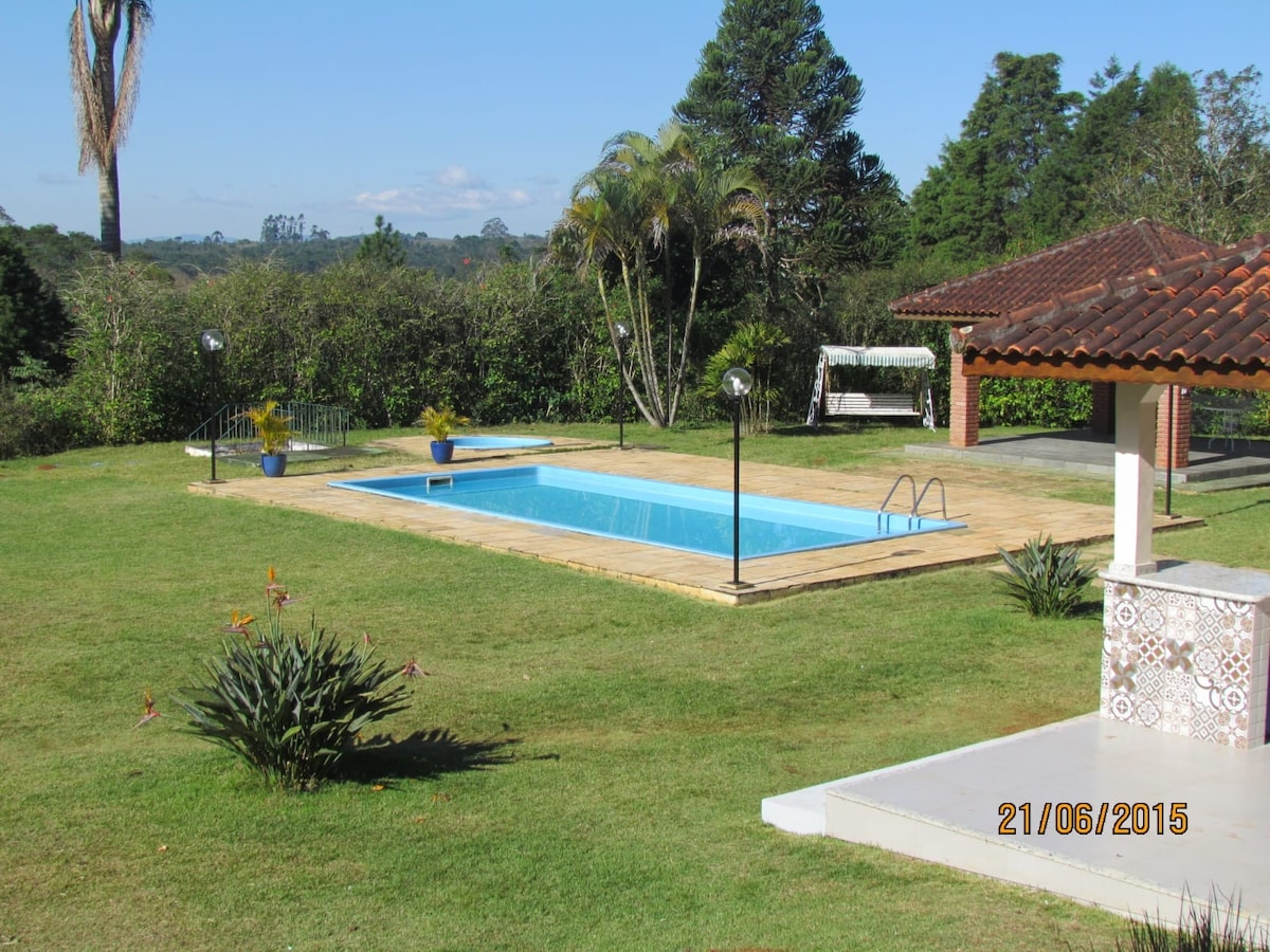 Perfecto para relajarse con familiares y amigos. 🏡 Capacidad para un máximo de 15 huéspedes 🛁 3 baños y 1 baño 🚗 6 plazas de aparcamiento 🏊♀️ Amplia piscina (5x13 m y 1,60 m de profundidad) 🧖♀️Sauna seca 📶 Wifi y Netflix Cocina equipada, con 2 filtros de agua. 🥩Barbacoa Ropa de cama (calidad prémium) Ventiladores en las habitaciones y salón. Pesca deportiva en el 🐟lago Jardín con árboles frutales (pitanga, acerola, etc.) Entorno ideal para el descanso y la conexión con la naturaleza.