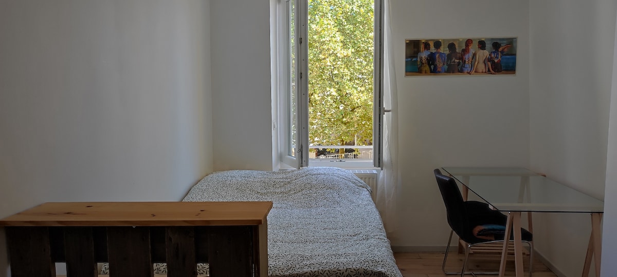 Studio de 32m2 avec grande terrasse, il se trouve dans l'enceinte du beau village de Vianne, au calme et à deux pas des commerces. La nouvelle piste cyclable est toute proche. Des places de stationnement gratuites sont à 1 min de marche. Depuis la chambre vous aurez une vue sur la rivière Baïse et les péniches, et depuis la terrasse une vue sur le jardin. L'accès au studio se fait par une porte au fond de notre jardin (coffre à clés). Draps, serviettes de bain et linge de maison fournis 🙂