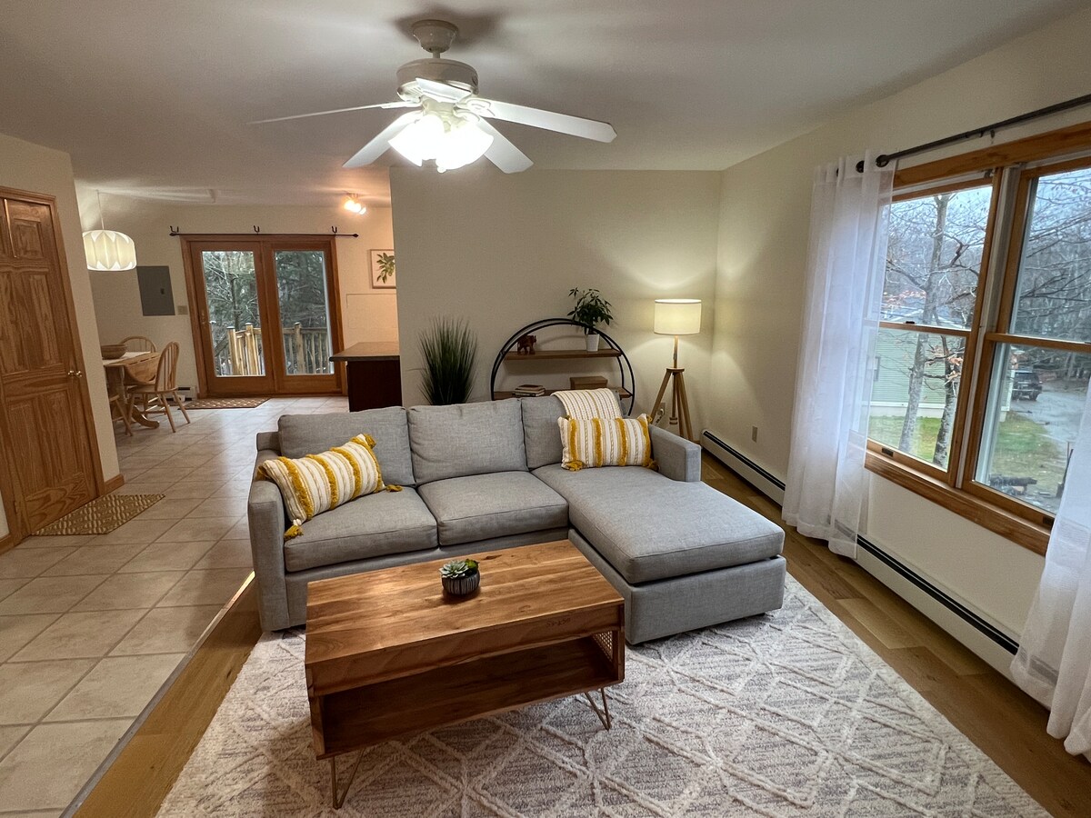 Nuestro encantador Airbnb se encuentra en el corazón de Gardiner Maine. Construida en 1850, nuestra casa histórica combina el encanto del viejo mundo con las comodidades modernas. Disfruta de los suelos de madera, las vigas a la vista y los detalles costeros que crean un ambiente relajante junto al mar. La distribución abierta ofrece una amplia sala de estar con sofá cama, TV inteligente, libros y juegos de mesa. Ofrecemos una cómoda zona de dormitorio con una cama tamaño queen. Un baño completo. Disfruta cocinando en la cocina totalmente equipada que se abre a un porche privado.