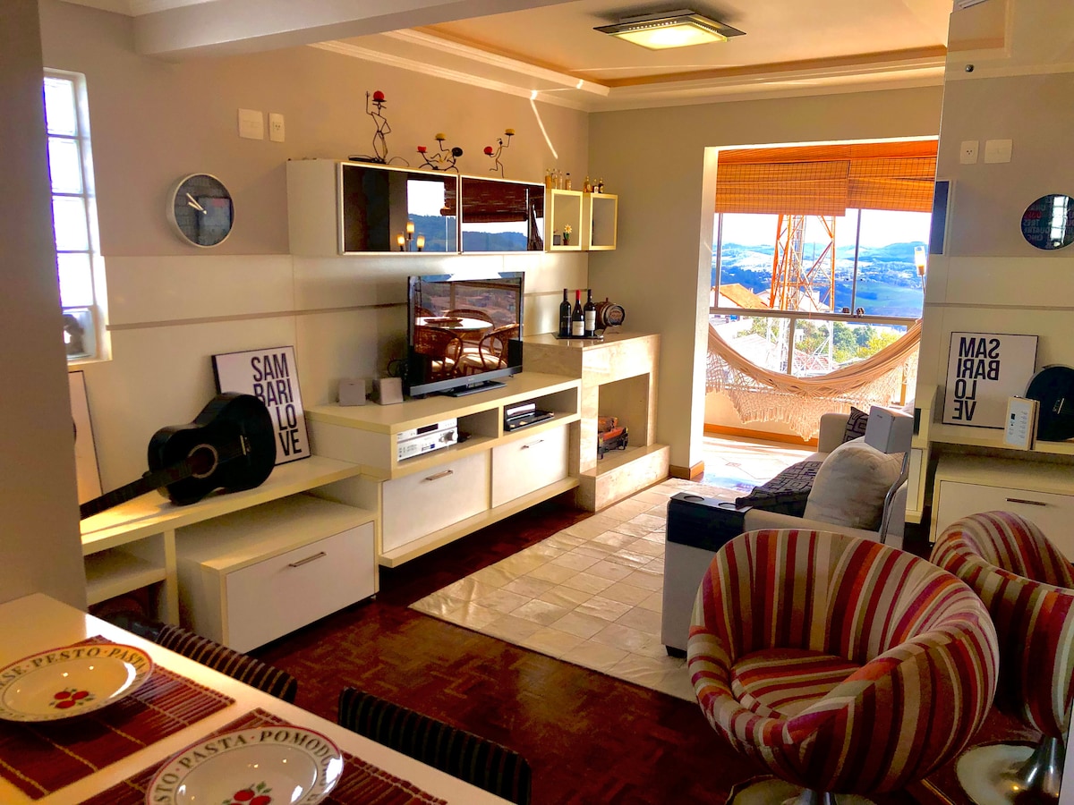 Hermoso apartamento con AR COND/Chimenea en el salón/Balcón con hamaca para relajarse/Maravillosa vista del Vale dos Vinhedos, 1 plaza de APARCAMIENTO. Sunny, Airy y Silent Apt. MUY BIEN SITUADO, PROX. A TODO Y CON HERMOSAS VISTAS al VALLE de LOS VIÑEDOS. 500mt da Maria Fumaça e Parques Turísticos e Igreja Cristo Rei 100mt do Mercado/Panadería/Restaurantes/Café/Tienda de Delicatesse y Farmacia A 300 metros del centro de la ciudad a 2 km del Vale Dos Vinhedos e Vinícolas a 2 km del Parque de Eventos (Ferias y Congresos)