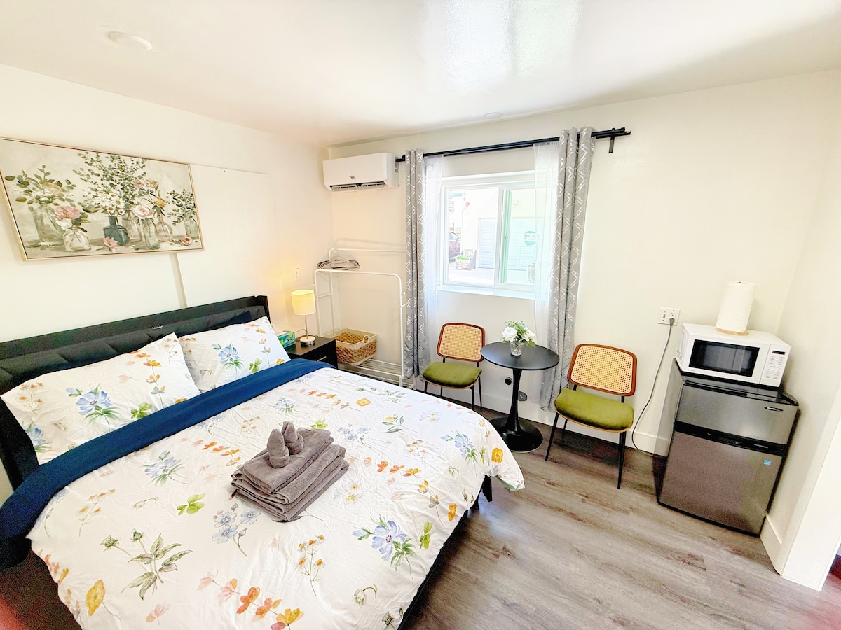 Esta acogedora escapada ofrece la mezcla perfecta de comodidad y conveniencia. Empieza la mañana con café y un poco de tiempo para ti en la lujosa cama tamaño queen. Luego, explora las vibrantes tiendas de San Gabriel Valley (SGV) o transmite tus programas favoritos en la Smart TV de 55 pulgadas. Con un fácil aparcamiento, wifi rápido y un ambiente tranquilo, este espacio tiene todo lo necesario para una escapada relajante. Reserva tu estancia hoy mismo.