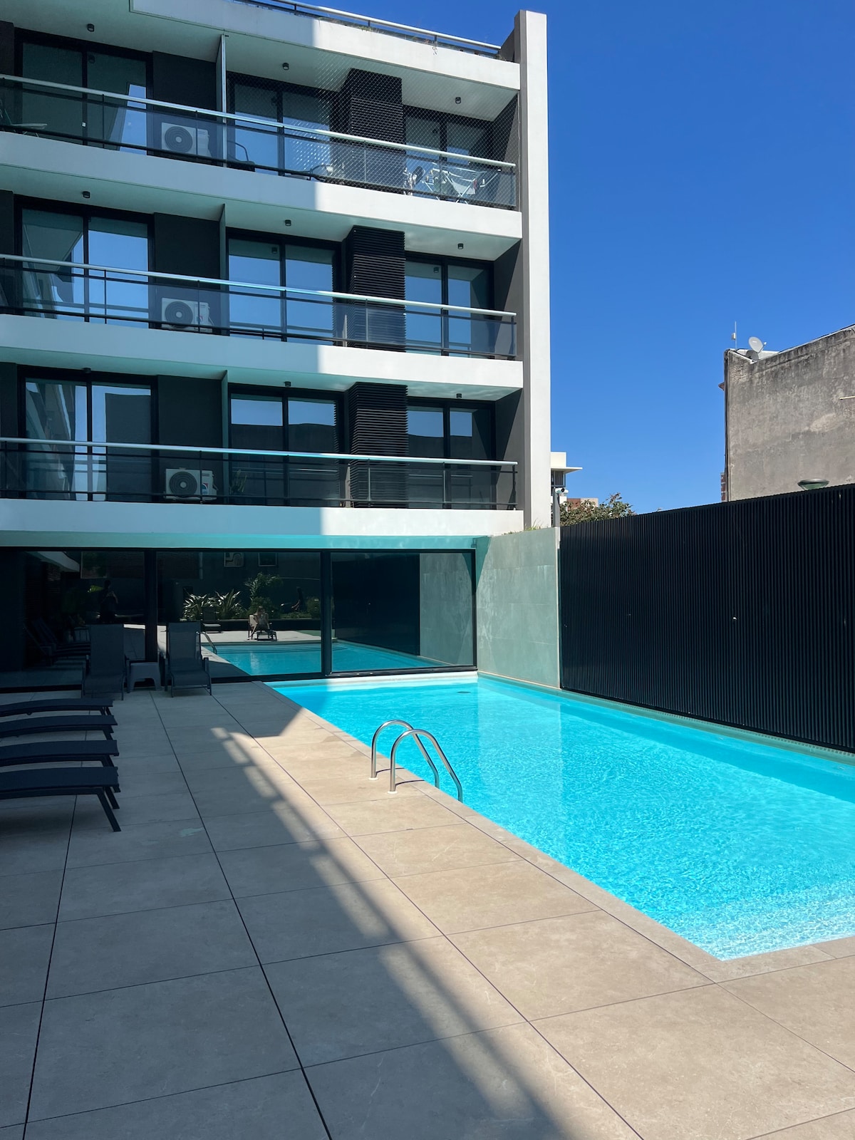 Pocitos: estudio moderno, piscina y self check-in