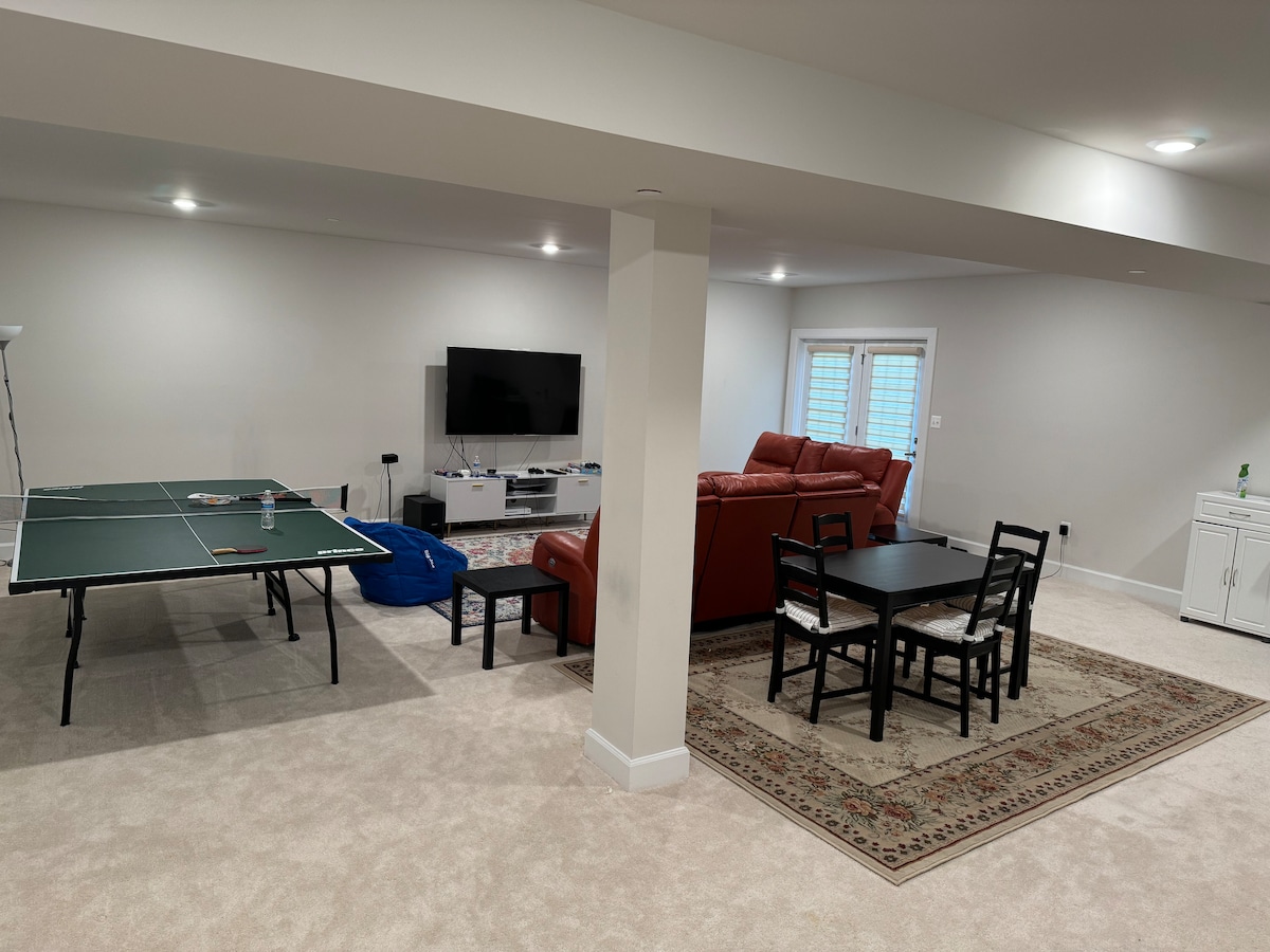 La casa se encuentra en la parte tranquila, más segura y cómoda de DC, muy cerca de tiendas de comestibles, restaurantes y transporte a la línea roja del metro. Ofrece 1 dormitorio con 2 camas, estudio en el sótano con 2 camas, 2 baños completos, zona de recreo con TV de 75 pulgadas, cocina y aparcamiento gratuito. Los propietarios viven en la planta superior, completamente separados del espacio de alquiler de los huéspedes. Los huéspedes tienen sus propias entradas y salidas a la casa en la planta baja. Hay 2 coches de aparcamiento gratuito en la entrada del propietario y aparcamiento gratuito en la calle.