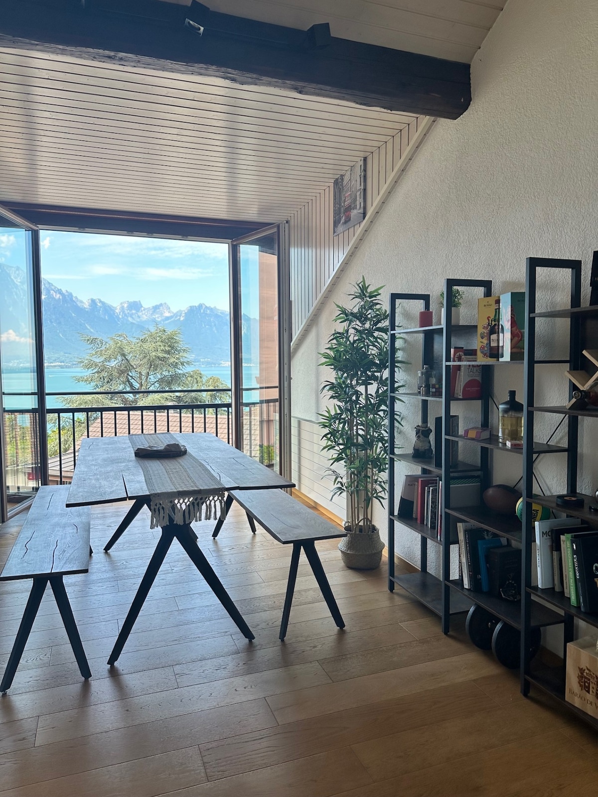 💝 Bienvenido a tu loft luminoso y nuevo de 55 m² en el lago de Ginebra, a solo 5 minutos de Montreux. Estaciones de esquí a 35 minutos (Villars, Leysin, Diablerets), baños termales Lavey a 20 minutos. 🏡 Situado en la segunda planta con ascensor de un pequeño edificio completamente reconstruido en 2025, este elegante y moderno loft puede alojar cómodamente hasta 4 huéspedes, con un balcón privado con impresionantes vistas al lago y a la montaña. Te sentirás como en casa al instante. 🅿️ + Transporte público a 1-2 minutos a pie.