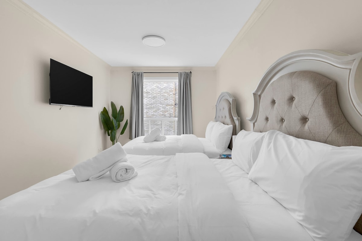 ¡Disfruta de tu estancia en el centro de la ciudad! ¡Nuevo TDC 2 de lujo en el centro con acceso directo al Bell Center! ¡Disfruta de la comodidad de nuestro apartamento de un dormitorio totalmente amueblado y equipado con balcón privado propio! Tu estancia incluye acceso a sauna, piscina, gimnasio, salón panorámico, sala de juegos, salón y terraza con múltiples barbacoas. Aparcamiento subterráneo gratuito, con el metro a pocos minutos. Sin salir, la ciudad es tuya para explorar. Además, relájate con Netflix de cortesía para disfrutar de una estancia perfecta.
