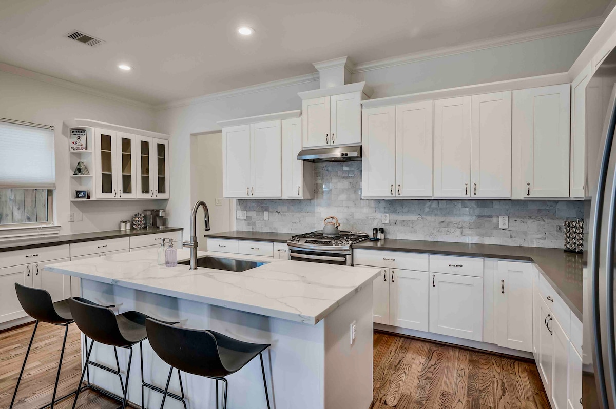 Bienvenido a Base Camp, ¡una impresionante casa con temática espacial en The Heights! Perfecto para viajeros profesionales que buscan una estancia única e inolvidable, nuestro espacio cuidadosamente diseñado cuenta con una lujosa cama tamaño king, obras de arte atrevidas, Internet rápido, televisores inteligentes y lavandería en la unidad para garantizar una estancia cómoda. Además, nuestra ubicación privilegiada ofrece fácil acceso al centro de Houston y a sus museos, teatros y estadios deportivos de clase mundial. ¡Reserva tu estancia en Base Camp y eleva tu experiencia de viaje en Houston!