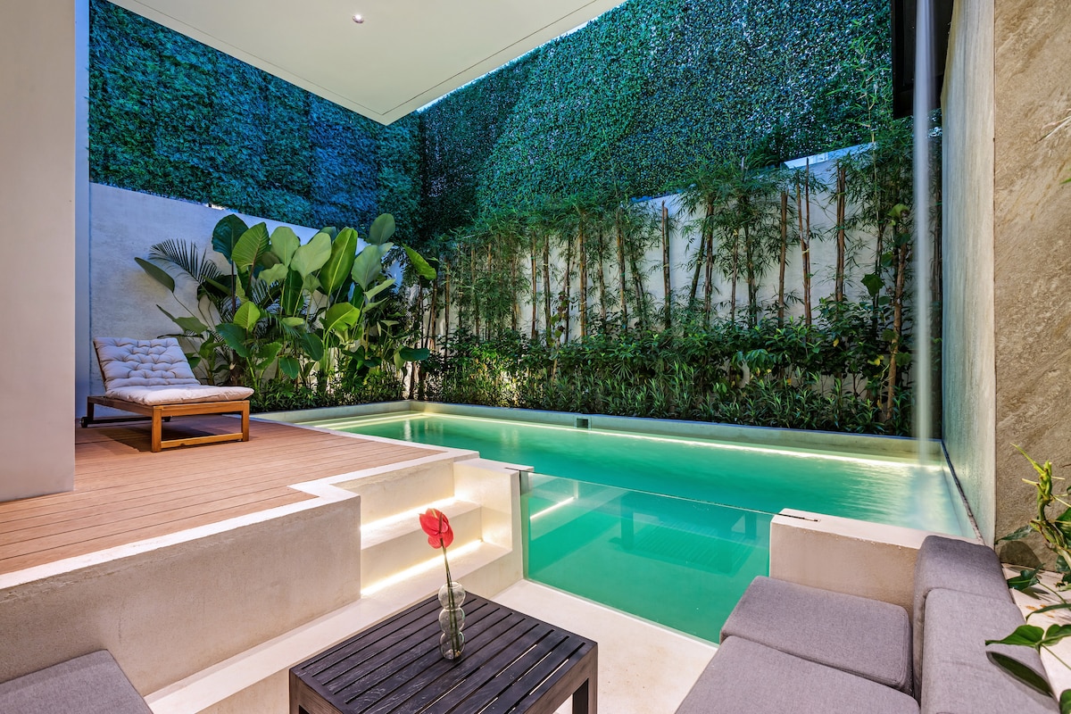 Escape to our Brand New 1 BR villa with private pool in superb location in the heart of Canggu, This is the perfect villa for couples or solo travelers who loves to explore famous spot in Canggu. Just 3-5 walk to great Restaurant, Shop, Gym, CoWorking, Pilates, cafes & Bars. It is just few minutes from famous beaches like Nelayan, Batu Bolong, Canggu Beach, This villa features a luxurious king bed, ensuite bathroom, kitchen, pool, living room, and open living spaces to relax by the private pool