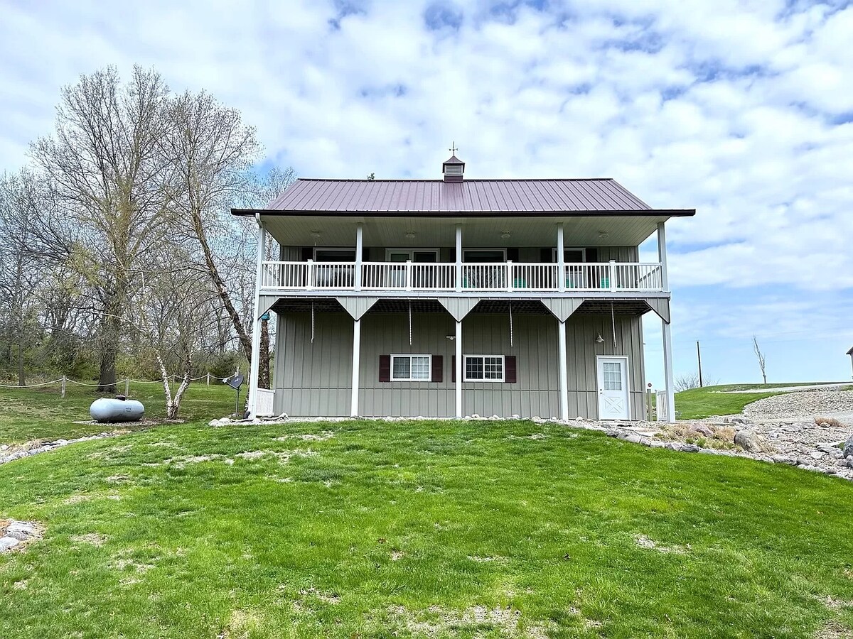 Amplia escapada de 2 dormitorios y 2 baños a solo 10 millas al este del lago Rathbun, con vistas a un tranquilo estanque de 2 acres. Disfruta de una planta abierta con grandes ventanales y vistas panorámicas de los impresionantes amaneceres y puestas de sol rurales de Iowa. Ya sea que estés de paso, visitando a tu familia o planeando aventuras locales, nuestro retiro limpio y familiar es el lugar perfecto para relajarte al final del día.