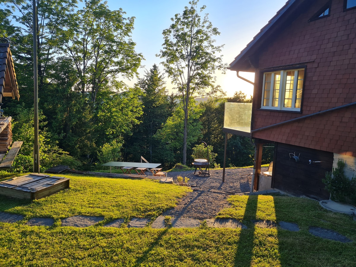 Loft de fábrica de 180 metros cuadrados con capacidad para 4 personas 1 cama con dosel, 1 cama doble, chimenea y estufa de leña. ACCESIBLE EN SILLA DE RUEDAS, agua de manantial propia. También tenemos un segundo loft para 6 personas, está en Loft 200 metros cuadrados en el bosque. Se admiten perros, hay una tarifa de limpieza final de 10 CHF por perro para toda la estancia, que se puede pagar directamente aquí al anfitrión.