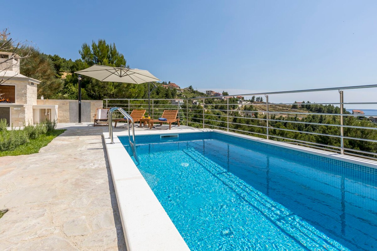 ¡Toda la villa solo para ti! VILLA ROMÁNTICA ubicada en un lugar verde ytranquilo, Dugopolje Nada en UNA PISCINA CLIMATIZADA yrelájate en el JACUZZI con jacuzzi Ponte al sol y escucha el sonido de la fuente Barbacoa bajo un cenador Trampolín, futbolín, dardos, 5 bicicletas, ¡TODO PARA TI! Genial, todo está cerca: Salida A1 autopista: 3 km PLAYA llamada ŽNJAN-15km City SPLIT: 16 km Puerto de transbordadores de SPLIT para visitar las islas BRAČ, HVAR, VIS-19km Antigua Salona a 9 km FORTESSA KLIS (Juego de Tronos) - 6 km Perfectamente cerca,pero lo suficientemente lejos para su paz y privacidad Disfruta de tus vacaciones