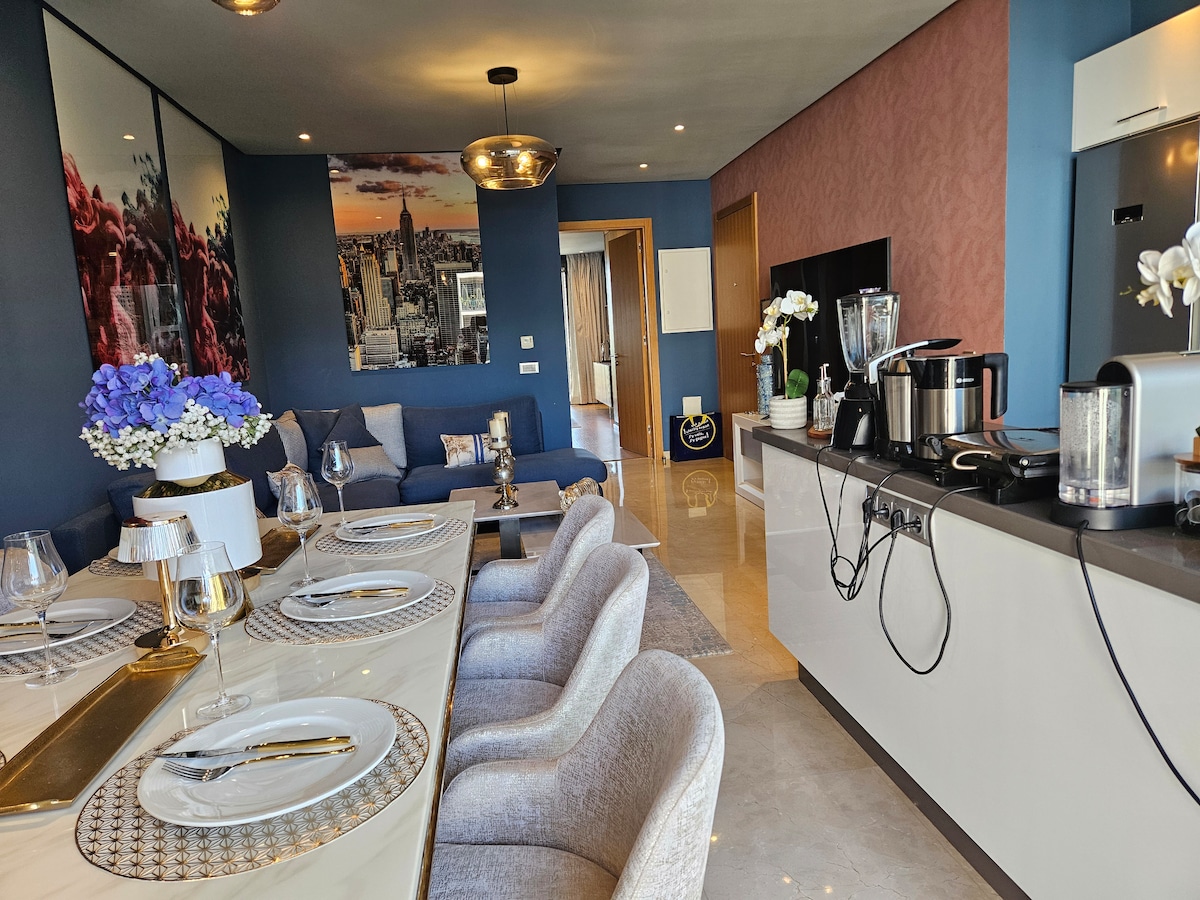 Lujo, confort y vistas. - Apartamento completamente renovado en un piso superior de una torre, único, idealmente ubicado en el centro de la ciudad de Rabat, cerca de todos los lugares de interés y todos los servicios, lo que facilita la planificación de su visita. - Impresionantes vistas panorámicas dignas de un cuadro maestro, que se extienden sobre la antigua medina, el Atlántico y varios monumentos emblemáticos. - Todo el apartamento tiene una vista fascinante tanto de día como de noche.