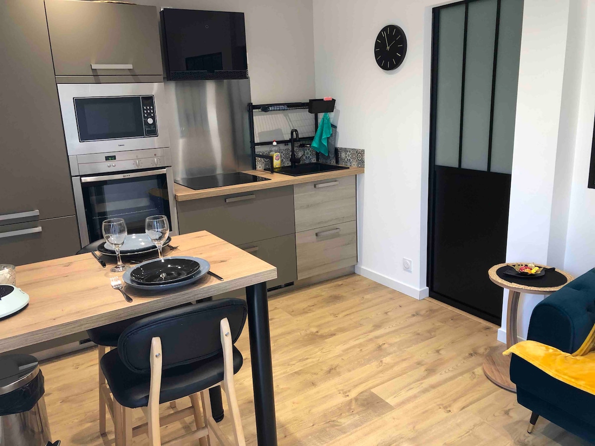 Encantador estudio reformado. Cuenta con una zona de dormitorio real con una cama tamaño queen (160 x 200). Una cocina amueblada y equipada. Smart TV con provisión de una cuenta de Netflix, Prime Video y Molotov. Para hacer su noche o estancia más agradable se proporcionan sábanas y toallas. También podrá relajarse en el pequeño jardín privado sin vecinos equipado con una barbacoa de carbón. Aparcamiento en patio privado cerrado con portón.
