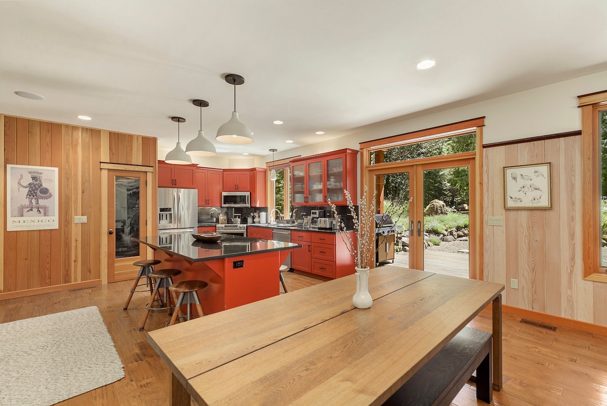 Bienvenido a Rhodi House, una cabaña tranquila y de diseño vanguardista escondida cerca del monte Hood National Forest. A 15 minutos de Government Camp y a poca distancia a pie del río Sandy, este refugio renovado de los años 70 ofrece dos dormitorios tamaño king, un acogedor loft abierto con una cama doble oculta, una terraza envolvente y una bañera de hidromasaje privada ubicada entre los árboles. Con un estilo moderno, una cocina bien surtida y sábanas suaves, es la escapada perfecta durante todo el año para parejas, amigos o familias.