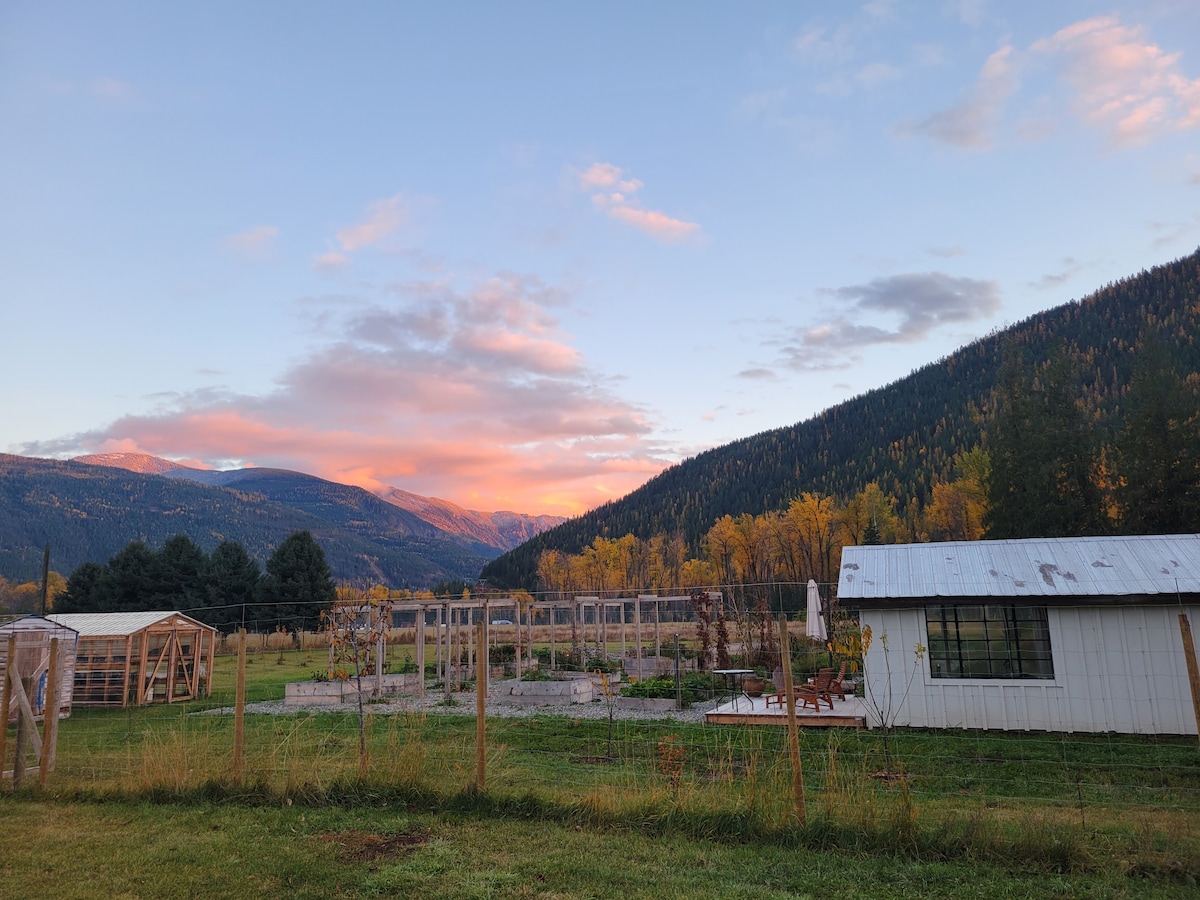 Bienvenido a Arrow Creek Acres, una tranquila estancia en una granja en el valle de Creston. Nuestra casa de huéspedes está escondida en una granja histórica de 95 acres rodeada de bosque de cedros y pastos abiertos. A solo 10 minutos de Creston y a 20 minutos del lago Kootenay, el equilibrio ideal entre aislamiento y comodidad. Disfruta de total privacidad, comodidades modernas y los ritmos sencillos de la vida rural. Desconecta, relájate y disfruta del encanto de la vida rural.