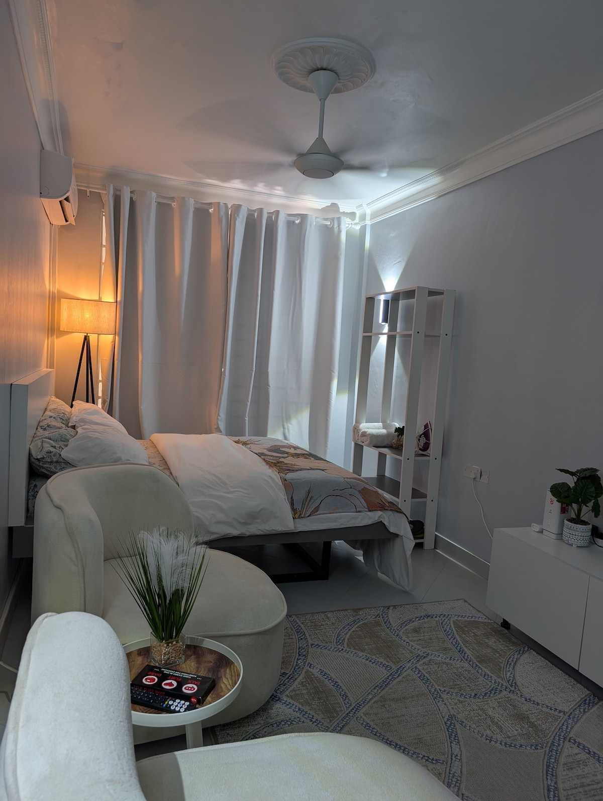 Disfruta de una estancia tranquila y cómoda en Msasani, Dar es Salaam, uno de los barrios más seguros y populares de la ciudad. Este acogedor y bien situado alojamiento es ideal para disfrutar de una estancia relajante. 🌿 Perfecto para viajeros solos, parejas y nómadas digitales, ofrece comodidad, privacidad, buena conexión wifi y una verdadera sensación de hogar lejos de casa. 📍 Ubicación privilegiada a pocos minutos a pie de la embajada de EE. UU., centros comerciales y restaurantes, con acceso rápido a la playa y al CBD, una base ideal para tu estancia en Dar.