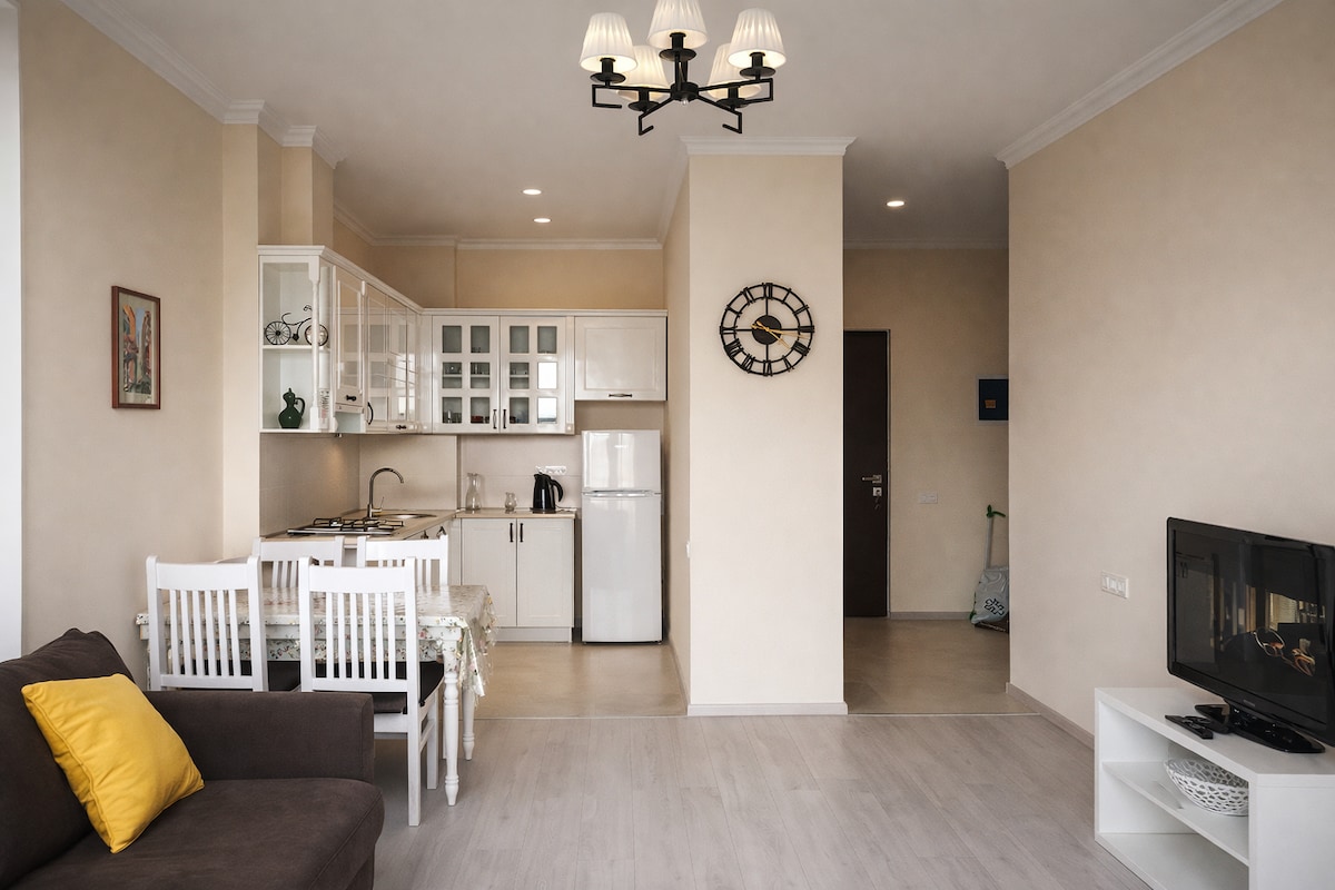 Experience the charm of a cozy and modern one-bedroom apartment, meticulously designed to provide both comfort and convenience. Every detail has been considered to create a homely retreat, equipped with all the essentials for a hassle-free stay. Situated in the vibrant neighborhood of Central Saburtalo, you will have easy access to plenty of dining options, entertainment venues and shopping districts.